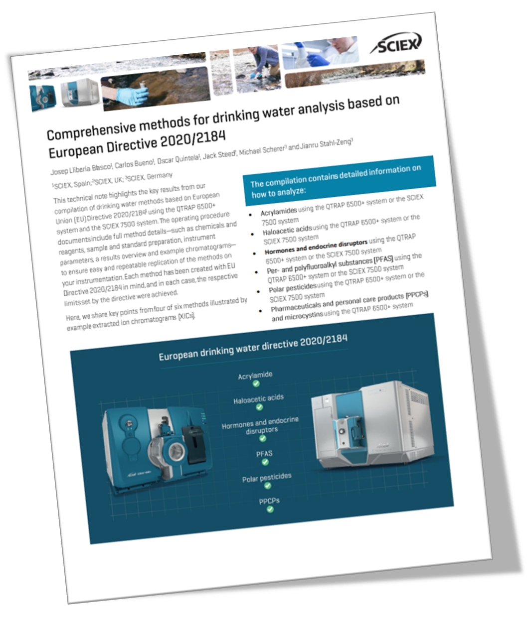 This report outlines analytical methods for ensuring compliance with the European Drinking Water Directive (2020/2184), which mandates the monitoring of pesticides, pharmaceuticals, hormones, and endocrine disruptors. Utilizing advanced LC-MS/MS techniques, the methods provide precise and reliable detection of regulated contaminants in drinking water, supporting public health and regulatory compliance.
