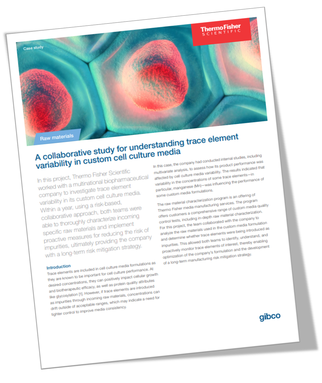 This study, conducted by Thermo Fisher Scientific in partnership with a biopharmaceutical company, investigates trace element variability in custom cell culture media. The research highlights how impurities in raw materials can affect cell culture performance and biotherapeutic efficacy. Using a risk-based approach and advanced analytical techniques, the collaboration successfully characterized raw material trace elements and implemented proactive risk mitigation strategies. The study underscores the importance of collaboration and transparency in optimizing media consistency for biologics production.